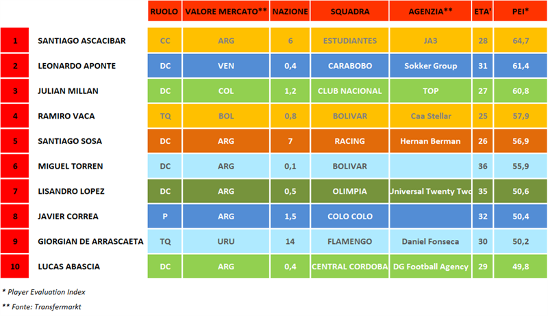 Il Boliviano è anche in testa nella nostra classifica generale. Ottimo giocatore, attaccante di razza, forse non a caso nella scuderia di una delle più grandi Agenzie mondiali, la CAA Stellar.