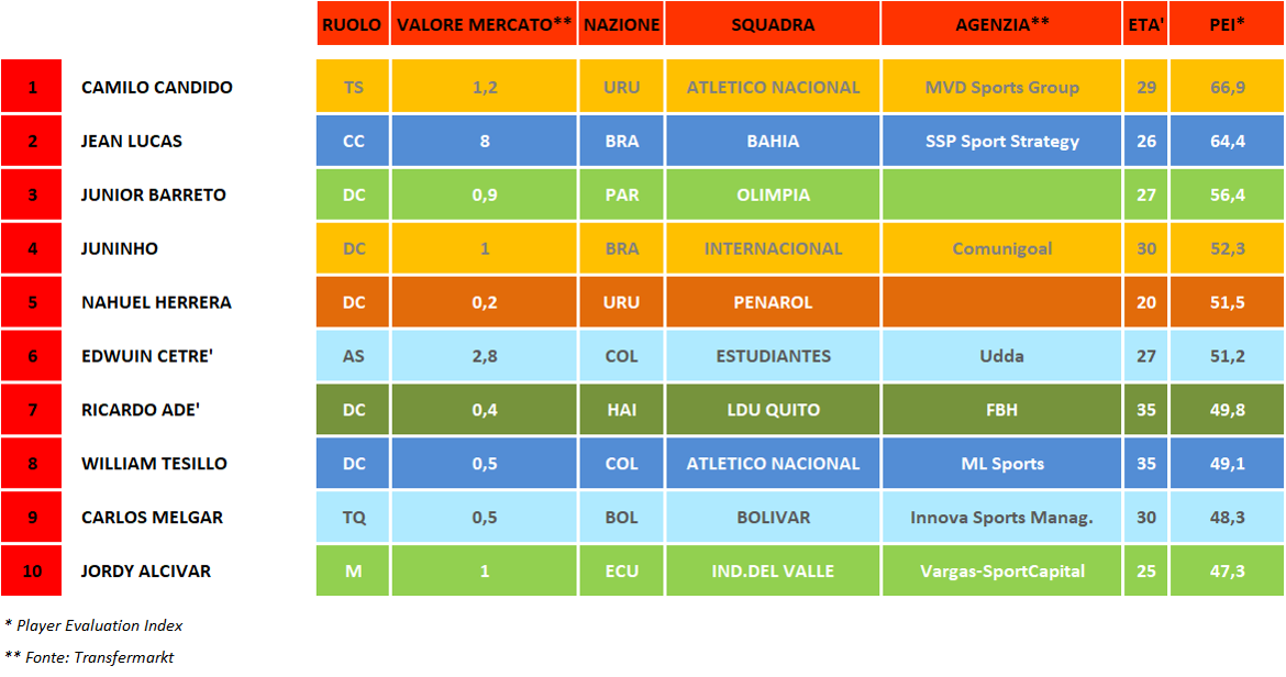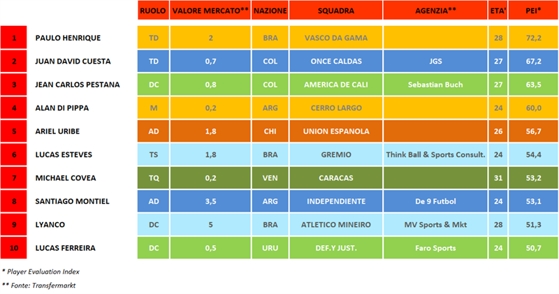 Come al solito segnaliamo principalmente i giovani e questa volta il ventenne difensore centrale del Penarol Nahuel Herrera. Non nei primi dieci ma sempre da menzionare Rayan il diciottenne del Vasco che farà parlare di sè.