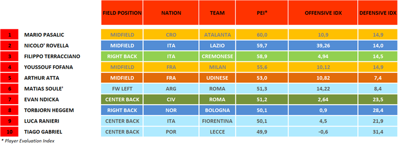 Mario Pasalic si aggiudica la palma di miglior giocatore del campionato per la giornata nr.2. Giornata caratterizzata dalle ottime prestazioni dei centrocampisti. Oltre a Pasalic nelle prime posizioni troviamo Rovella, Fofana e Atta.